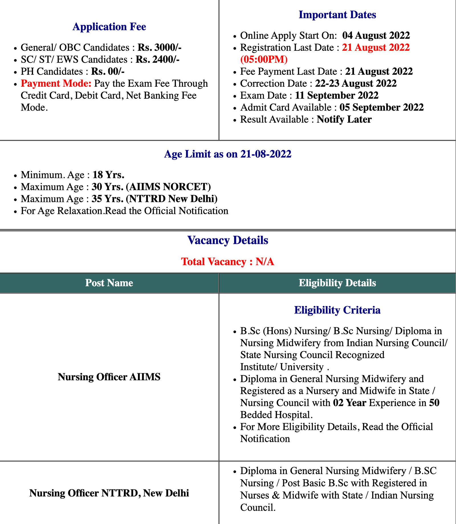 All India Institute of Medical Science (AIIMS)AIIMS Nursing Officer NORCET Result 2022 |