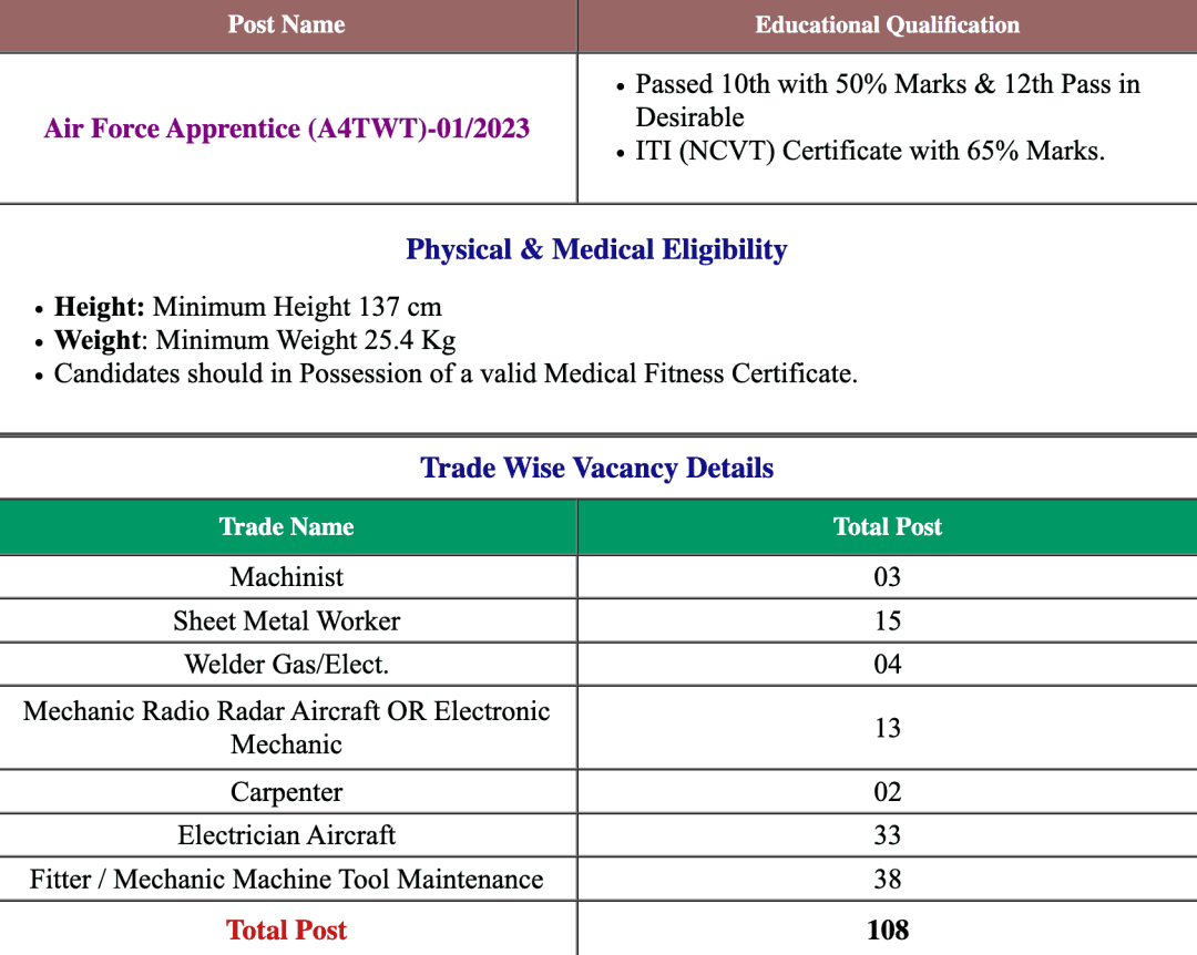 Name of Post: Indian Airforce Apprentices 01/2023 Online Form