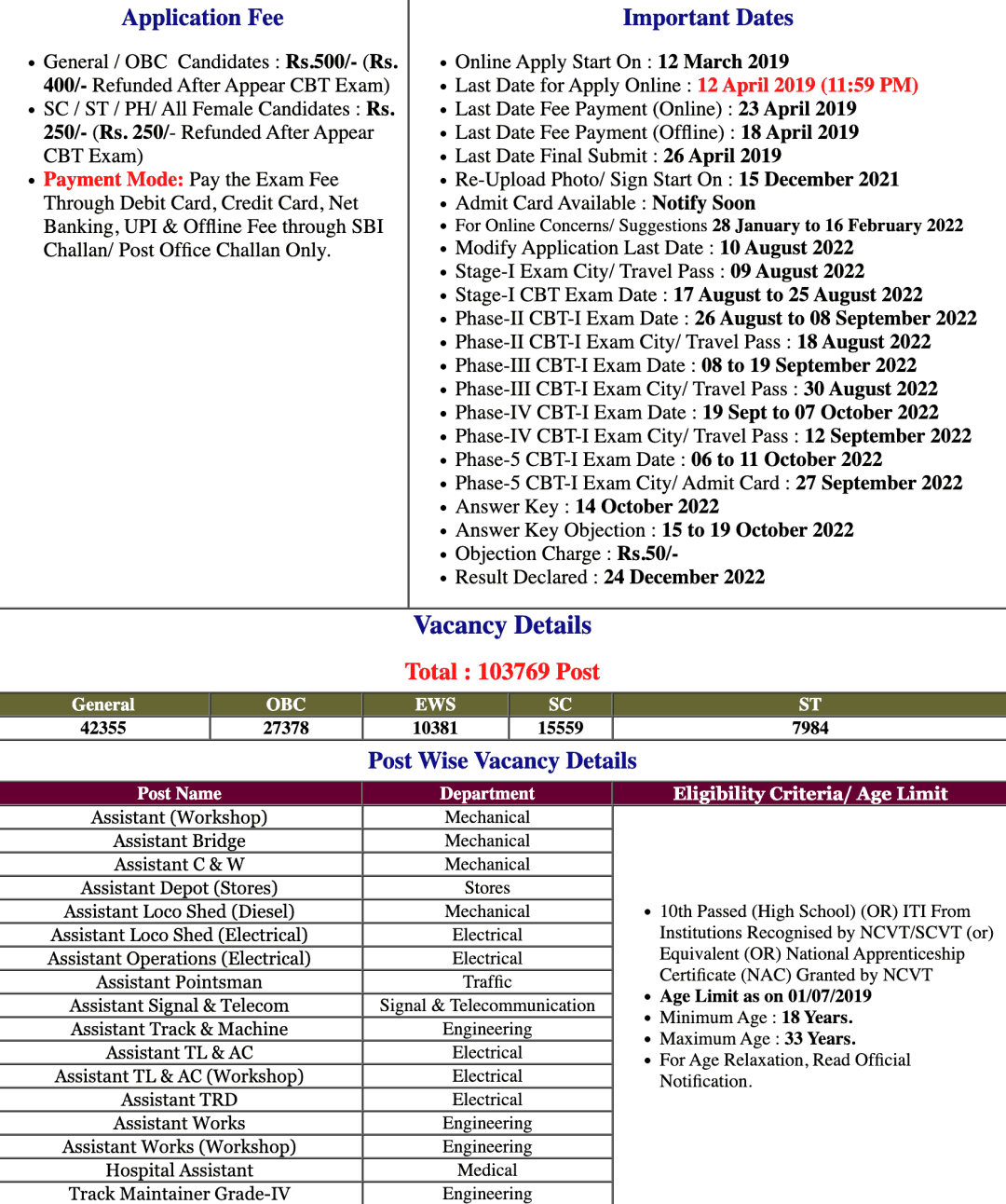 Railway Recruitment Board (RRB)Railway RRC 01/2019 Result Notice 2022 |