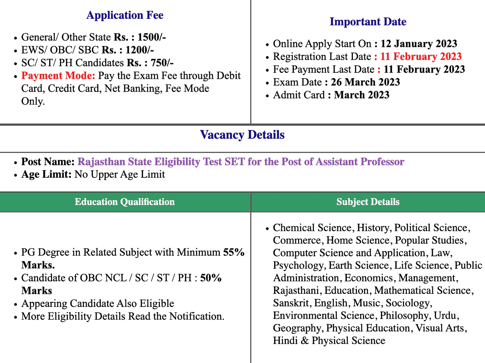 Rajasthan State Eligibility Test (SET)Rajasthan SET Admit Card 2023 |