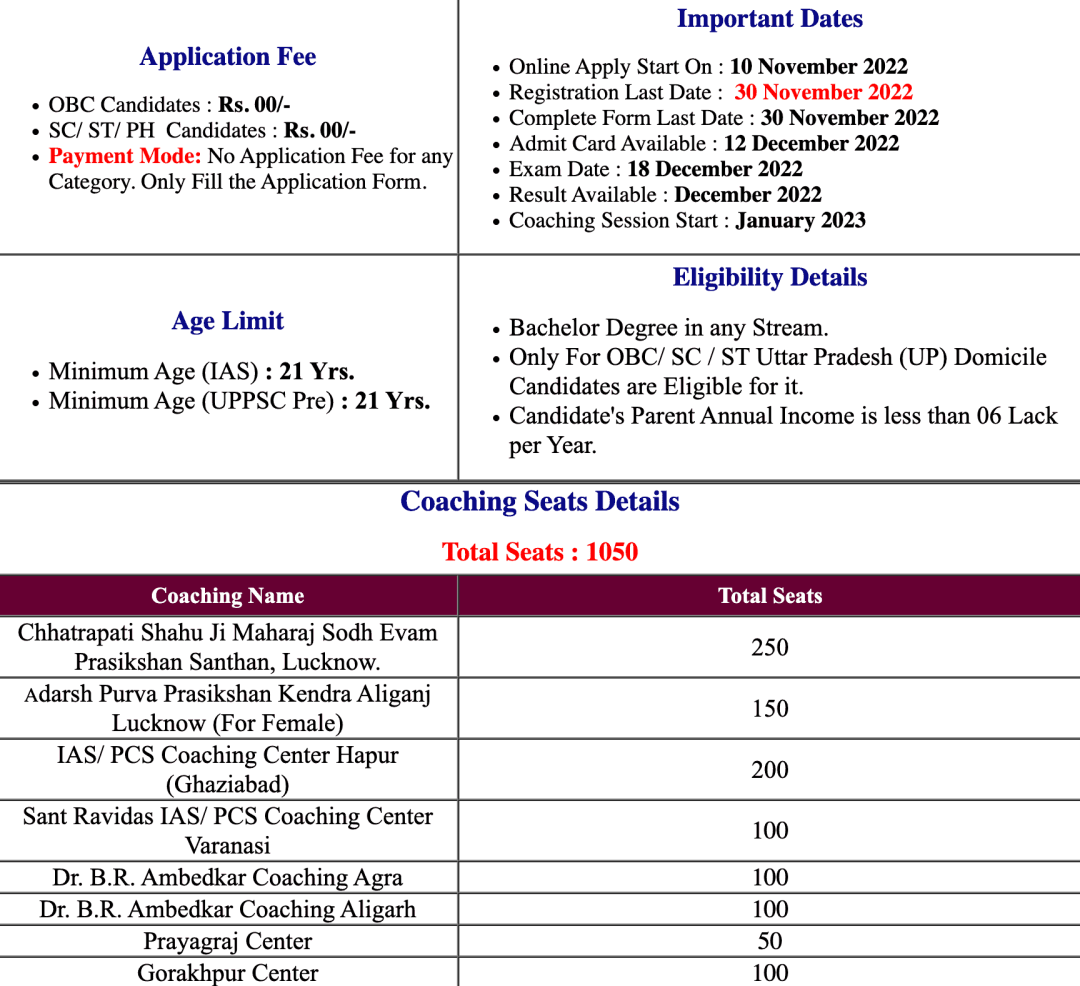 Social Welfare Department, SWD Uttar PradeshSWD UP IAS / PCS Free Coaching Admit Card 2022 |